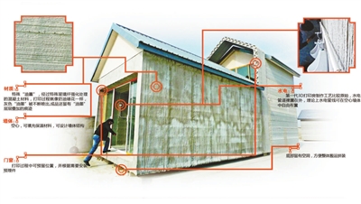 正常情况下,材料会在24小时内固化。能够打印出别墅,最关键还是在油墨,是一种以改良水泥混合玻璃纤维制成的材料。为使部件的重量相对较轻,房屋采用了空心墙体。电脑制作的3D模型为此提供样板,操作人员可以预留门窗等部件的位置,水电等管线可以在空心墙体中自由布置。