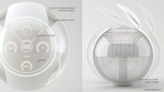 Orbit在英文中的意思是“轨道”,这款洗衣机在外形上就像带有光环的卫星,中间是用超导金属制成的球形洗衣篮,洗衣篮表面还覆有防震器和抗碎玻璃,里面则装有可以用来降温的液氮装置。